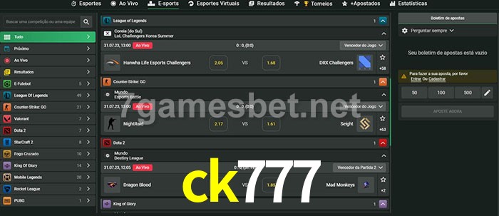 O ck777 oferece uma grande seleção de opções de apostas em e-sports com probabilidades competitivas